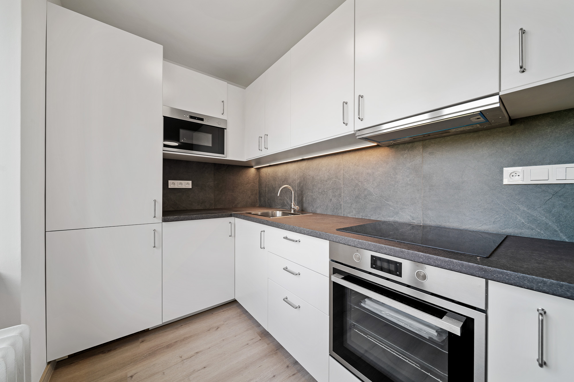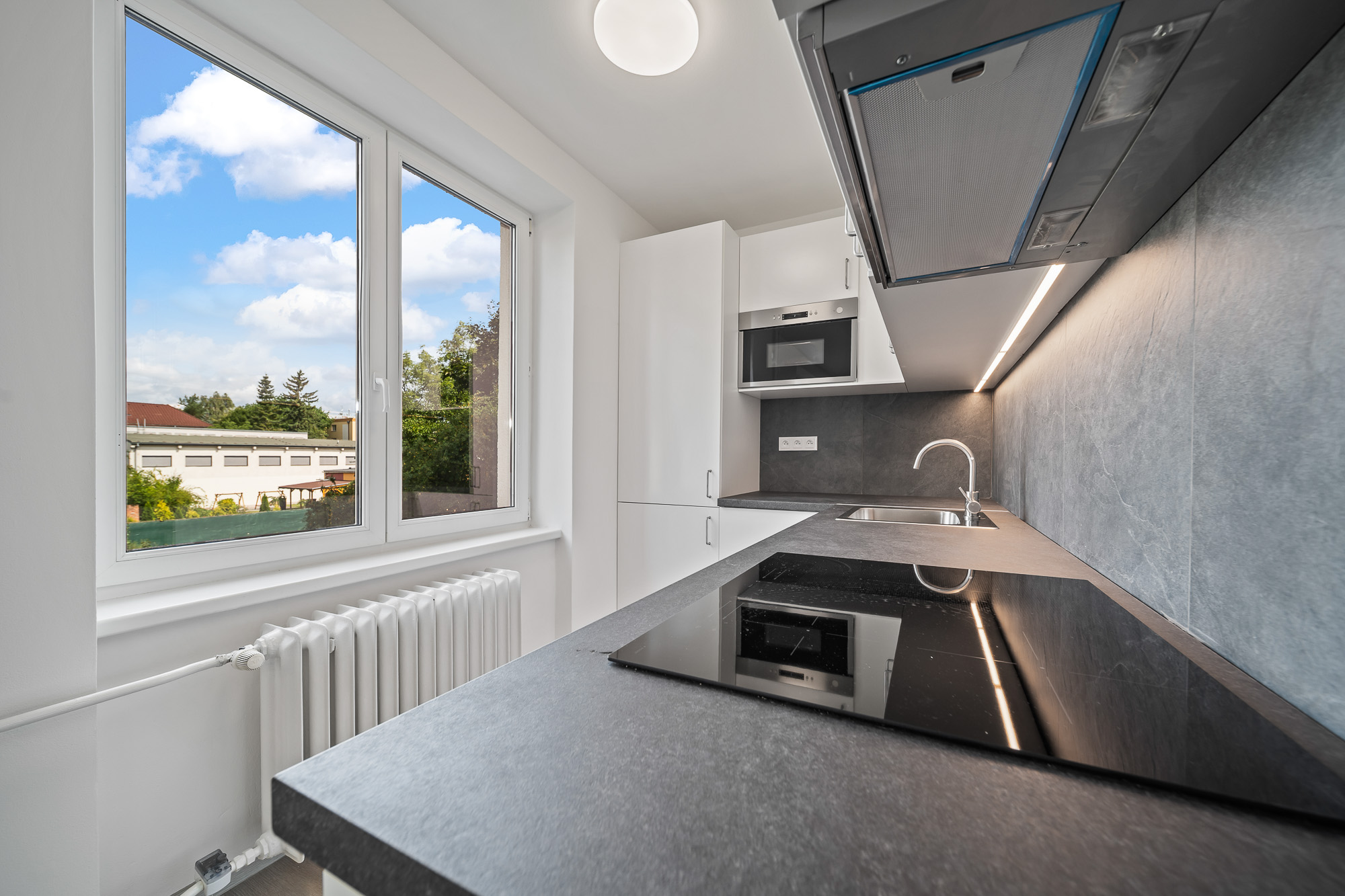 Výsledkem je světlý, nadstandardně zpracovaný byt, jehož kvalita je srovnatelná s novostavbou.